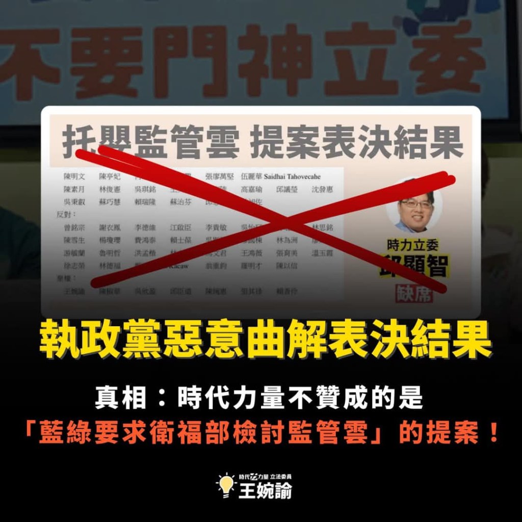 再說了,明明是藍綠白三黨都分別提案凍結監管雲預算,並要求衛福部找反對改革的托嬰業者「妥為溝通」,這種垃圾提案還敢找時代力量支持,請問是梁靜茹給的勇氣嗎?