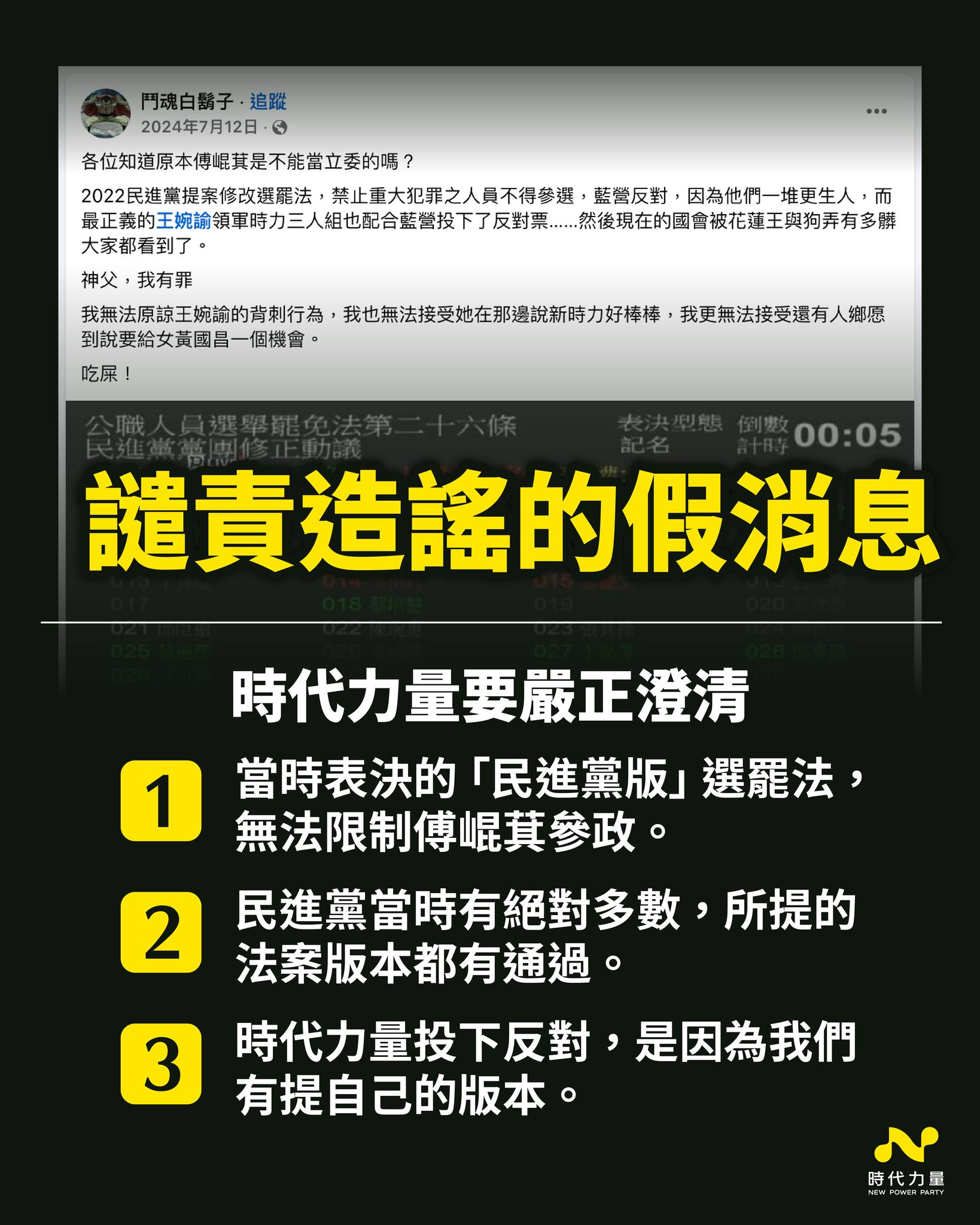 2023 年表決時,民進黨也投票否決了時代力量的版本,難道,這是代表民進黨配合藍營操作嗎?
