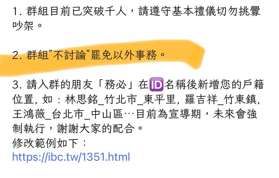 至於 line 群內言論審查的指控,因為版規本來就明訂「不討論罷免以外事務」,不只是針對時力,若出現無端謾罵民進黨的言論,也是會被管理員制止的。